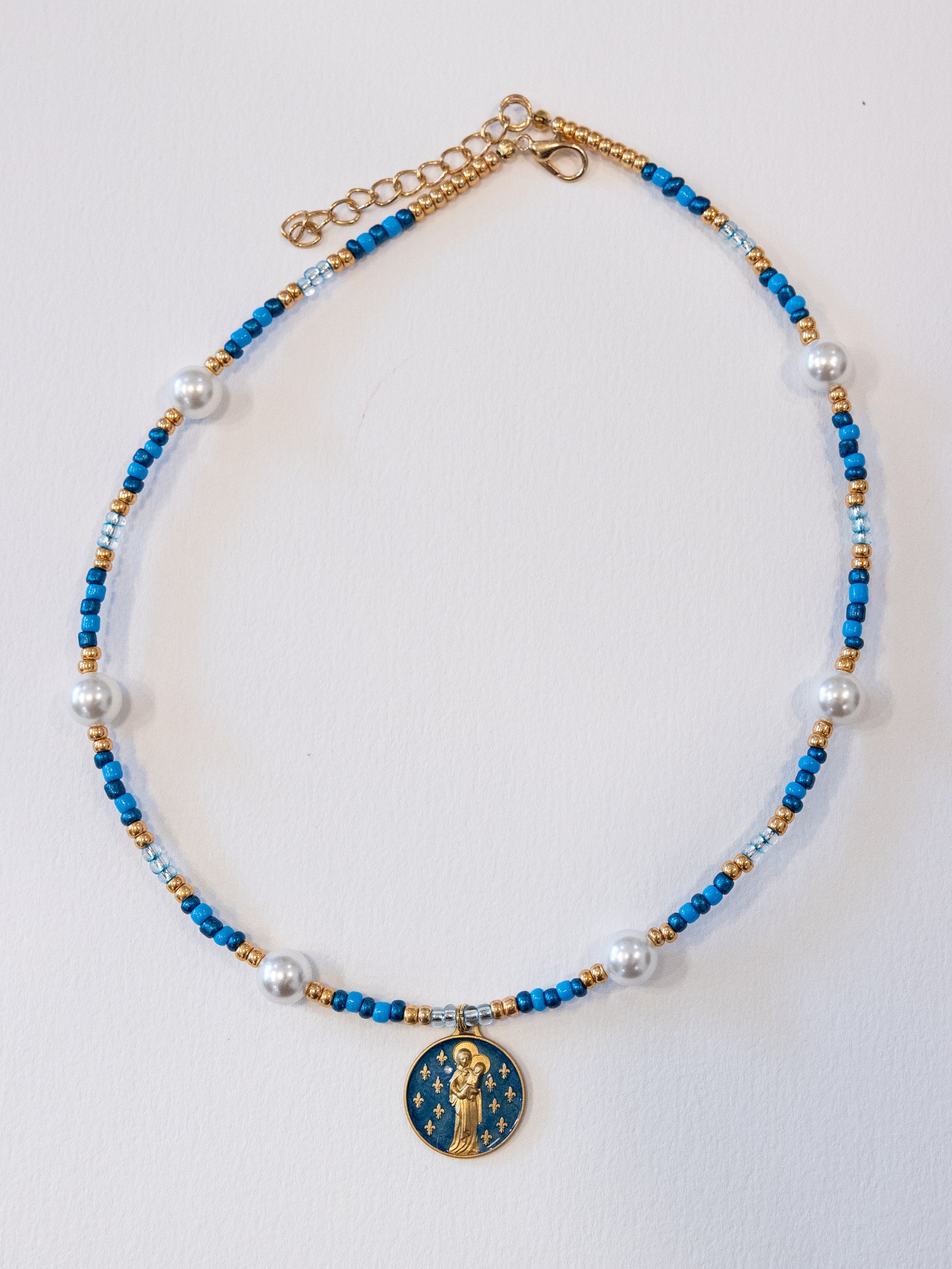 Freshwater Pearl & Bead Necklace with Fleur-de-Lis Medal